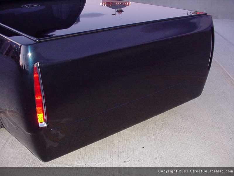 One of the first items at hand would be to shave the emblems on the front fenders to give them the smooth look. To keep the front moving, a Stillen front bumper was installed. Moving back to the rear, the decision was to shave the hood squirters, cab seems, rain gutters and wiper cowl. Still trying to find the rear of his ride, Thomas found other items, which would end up being replaced with new materials. The gas filler door was relocated into the bed. The bed caps, third brake light and the locks for the tonneau cover were shaved.