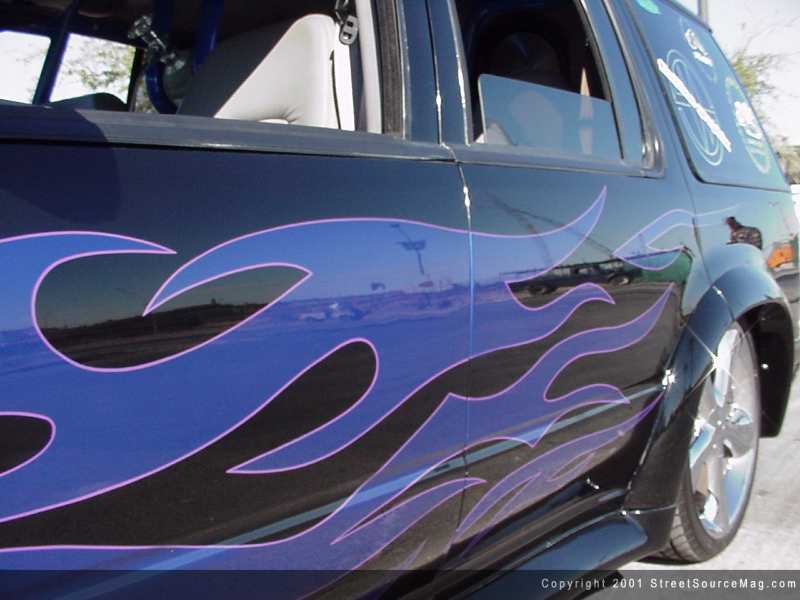 | The tribal flames were painted using Mercedes Benz Bahama blue with violet pinstripes. |