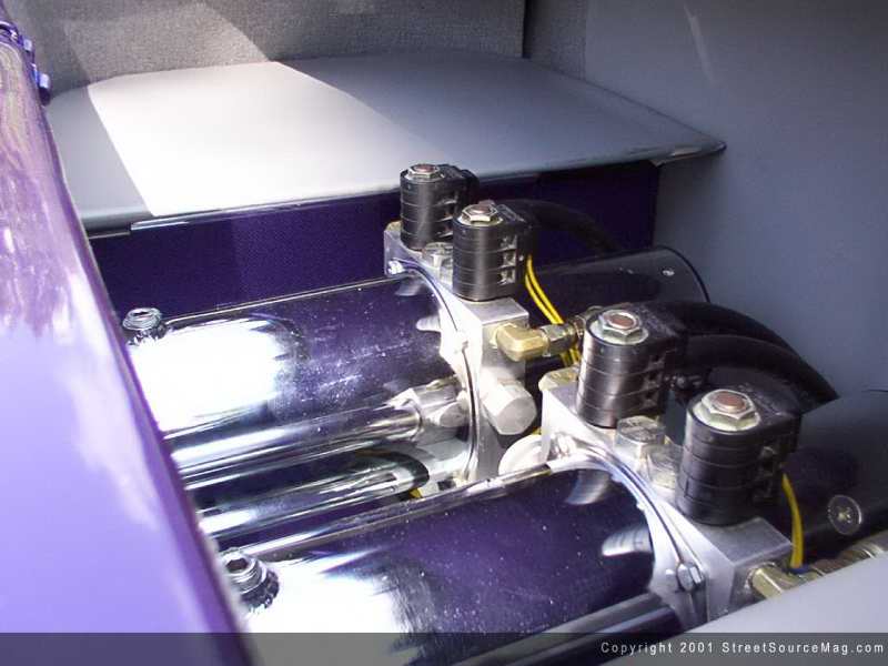 Now it was time to pick out a suspension for the Civic. Two Skyjacker chrome pumps with integrated dumps were installed along with 2 group 31 batteries and eight switches.  Reds ½ ton springs were installed on all four corners with 6" cylinders in the front and 8" cylinders in the rear. Will installed the entire set-up with the help of Adam Dietz.