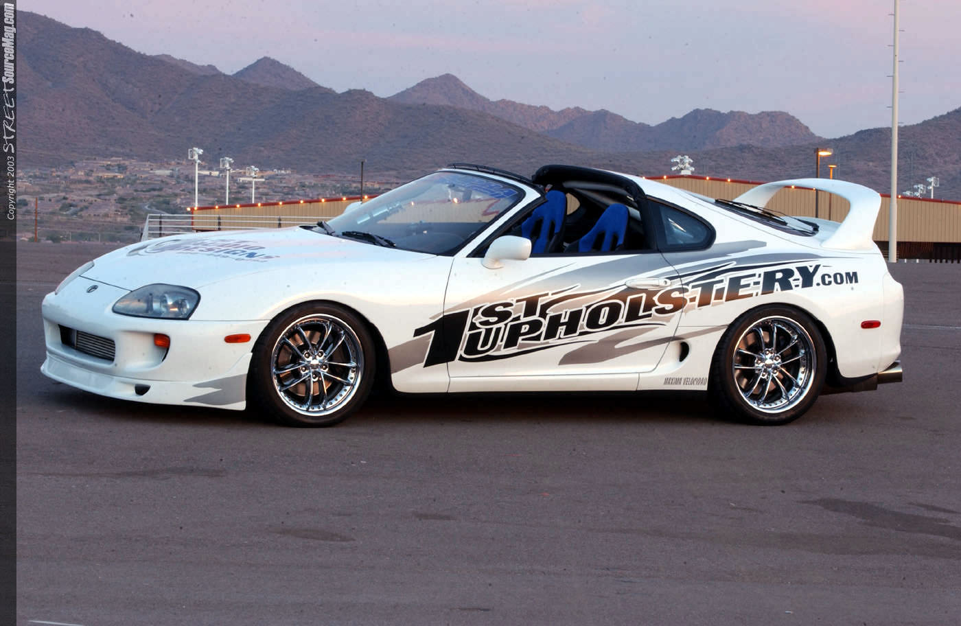 One of the first items at hand would be the current stance and shoes equipped on the Supra. So to take care of these problems the stock suspension was removed and replaced with a set of Eibach springs to bring about a more aggressive look. Next the stock shoes would be set aside for another day and replaced with a set of 18 inch Niche wheels wrapped in 245-35 Nitto 555's.   With the lower stance and new shoes, cornering would be much improved but Ian still decided to install a polished strut bar under the hood to help tighten things up.