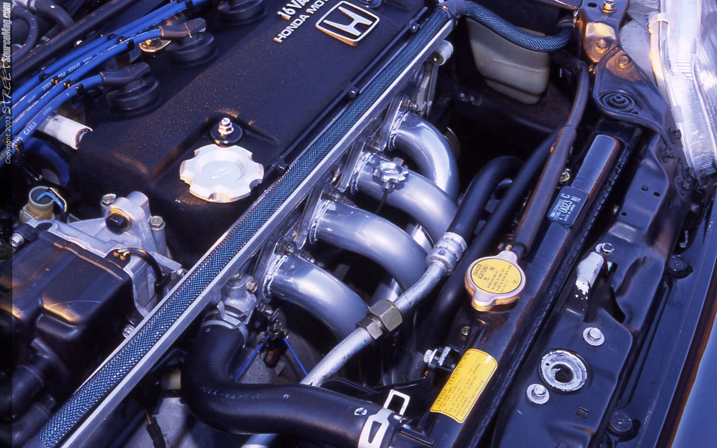 With Randy having previously worked on an Acura Legend which he competed and won numerous IASCA titles in the 90's, it was the decision after a long conversation with Chad at the 1999 consumer electronics show that it was time to build yet another dominating ride. The first car he would send Chad was not in the best of shape so the decision was to sale it, which they did and purchased a new one that, was in much better shape. With Chad being an installer at Soundworks it would be easy to rework any of the wiring stereo and video needs they would deem necessary for this project. With all intentions of this ride being built for stereo, the ensure us that much more engine and exterior modifications will come later on this year. Starting with the engine, all factory wiring in the engine bay was rerouted to where it was pretty much invisible.