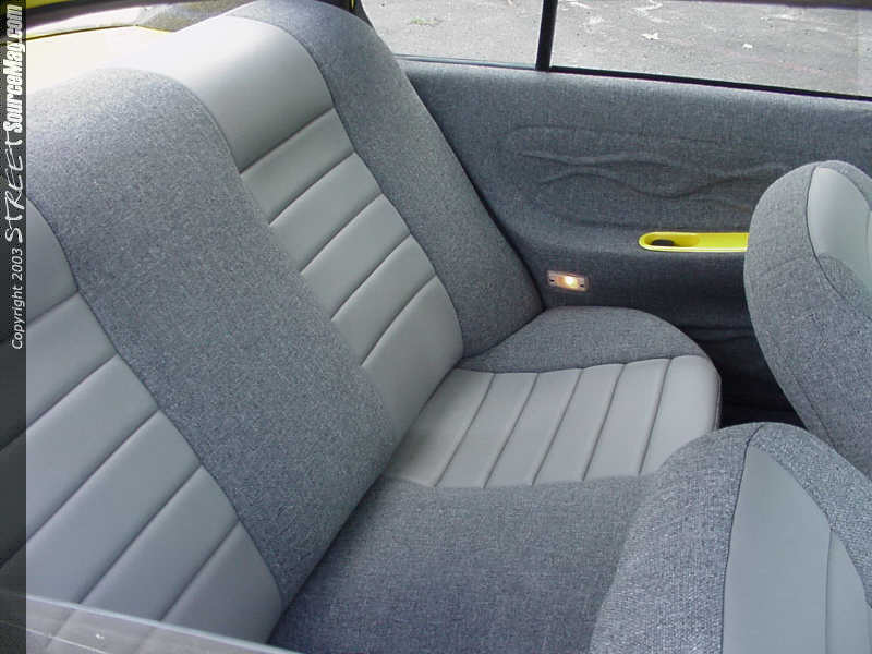 With Jason's work complete, Tom would turn to Kenny Kikuchi of Spokane, WA. In Kenny's hands, the seats would be wrapped in two-tone graphite tweed with slate gray vinyl center. To finish things off and help tie things together, a set of white face gauges along with a Grant steering wheel with fabricated adapter; would be installed.