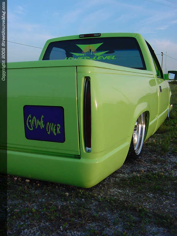 For other exterior changes Patrick Cordell took over and shaved the tailgate handle, molded the roll pan and bolted up a set of Cadillac tail lights.  When the body work was exactly the way Ramiro wanted it, with the help of Patrick, they layed down the eye catching Shrek Green you see before you everywhere they possibly could.