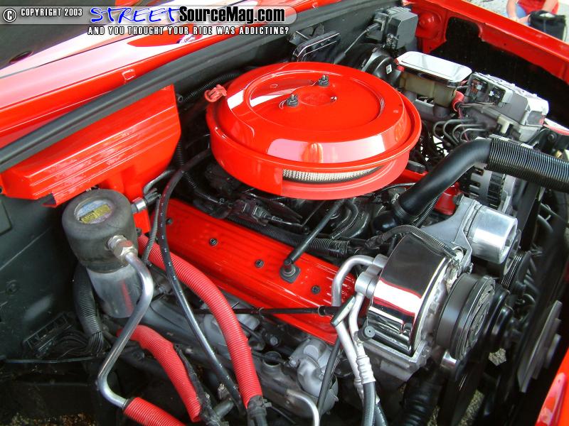 Jon decided to treat the stock 350 engine and engine bay much like he did the chassis; every nut, bolt and screw was replaced with a new fresh powder coated replacement. Any item that could be removed was and then treated to either powder coating or paint.  Jon completed the second phase much like he did the first, on a deadline. Jon was finished the final touches only a mere 2 hours before it was time to leave for Greenville's Showfest 2003. Much of the truck had only been out of the paint booth since the morning before. Talk about cutting things close, but like always Jon came through.