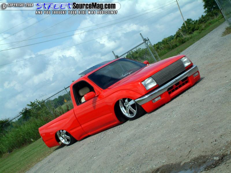 The gas filler door would then be shaved and moved into the bed while a set of Dimondback headlights would be bolted up along with APC Kandy red taillights. Trailer fenders would take place of the stock wheel tubs while the rest of the bed would be smoothed out and a ragtop cut and placed into the roof. Jamey would handle some of the bodywork while Don Bracken would help and finish the majority of the work.