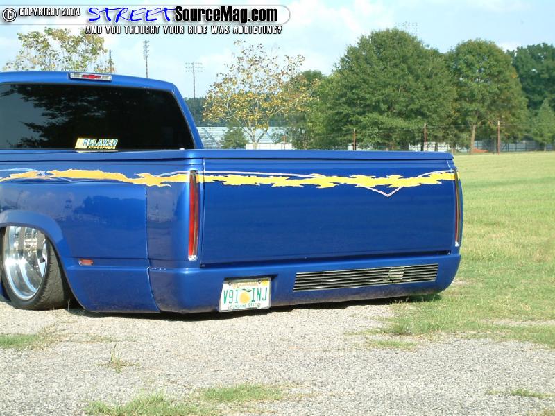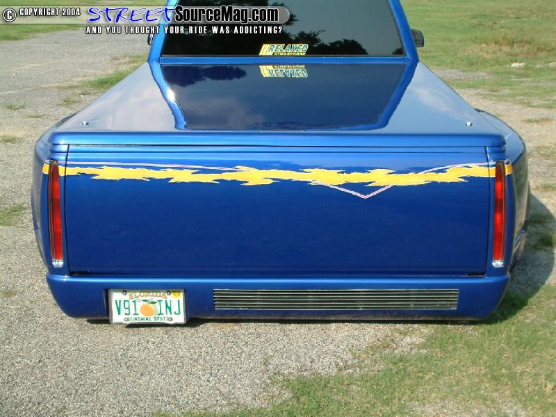With the body work complete and the dually primed Denny Phillips of Meridian, MS would then lay down the PPG Lamborghini blue with PPG yellow graphic to help break up the solid color.