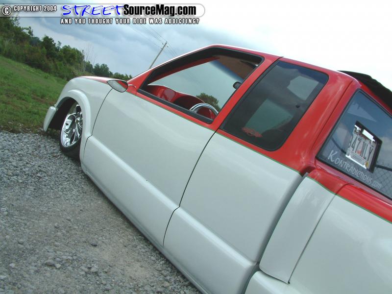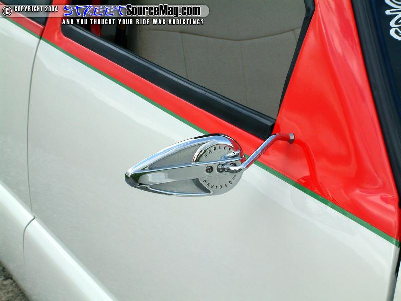 A sliding rag would then be cut into the roof while a set of Harley Davidson mirrors replace the shaved mirrors. Finishing off the custom bodywork, Jason would then have the rain gutters and third brake light shaved for the overall smooth appeal. Professional Restoration and Collision would perform a lot of the bodywork along with Jason assisting in the process. With the bodywork complete Jason would then have the crew at Professional Restoration and Collision lay down the Viper red and pearl white two-tone paint.