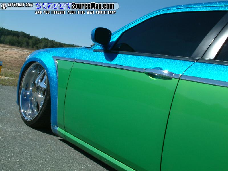 Keeping things rolling in the custom appearance Kris would turn to John once again for his paint expertise. This time around Kris would use an F22 HOK Royal Blue metal flake and lime time green two-tone design.