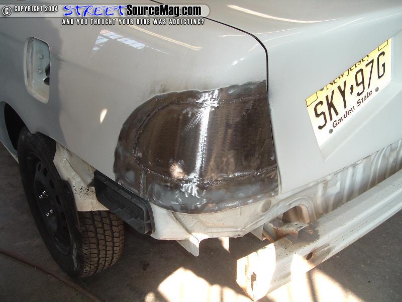 I taped up the quarters and scuffed the areas that were not already 320 sanded. I began by spraying some etch coat on the quarter over any bare metal spots. I then applied 3 coats of high build primer to each quarter. The quarters/tails were then sprayed with guide coat so I would know of any high or low spots when sanding it. When the prime was dry I blocked it out with 180 on a long board. I guide coated the whole quarter and tail section again and blocked it out with 320 on a long board. The car was then left in the sun for about 3 days because I couldn’t bake it at the time.