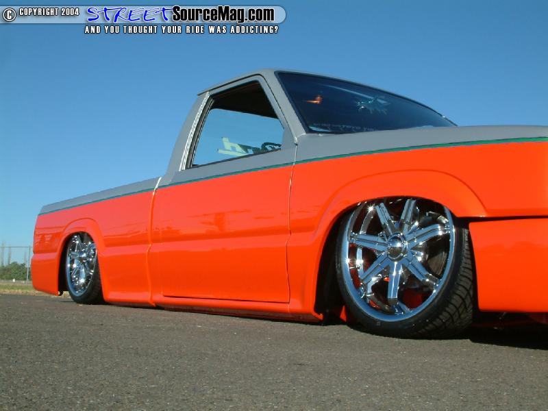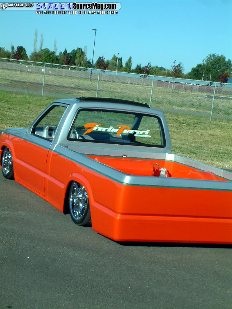 Then next aspect of the build up would be the exterior of Shawn’s B2200. Getting moving Shawn would have a fully shaved Grant Kustoms Cali-combo and front bumper. Next the bed would be sheet-metaled in leaving a smooth inside along with an S10 gas door molded into the floor.