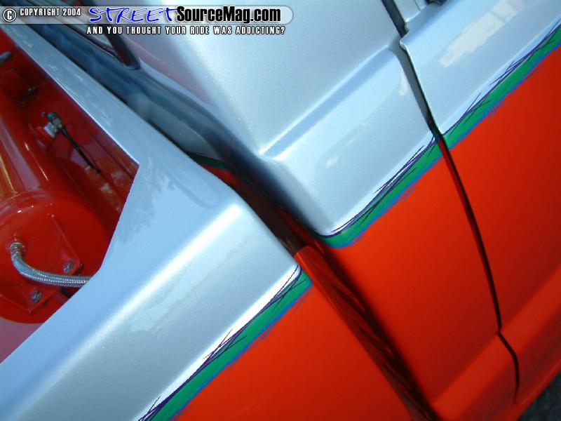 Next the cab pillars would be shaved along with the doors being notched to match the new cab pillar contour. The mirrors would then be shaved along with the inner door lock, all seams, corner markers and cowl. Once the bodywork was complete the Mazda would be sprayed with HOK orange and silver paint two-tone paint job.