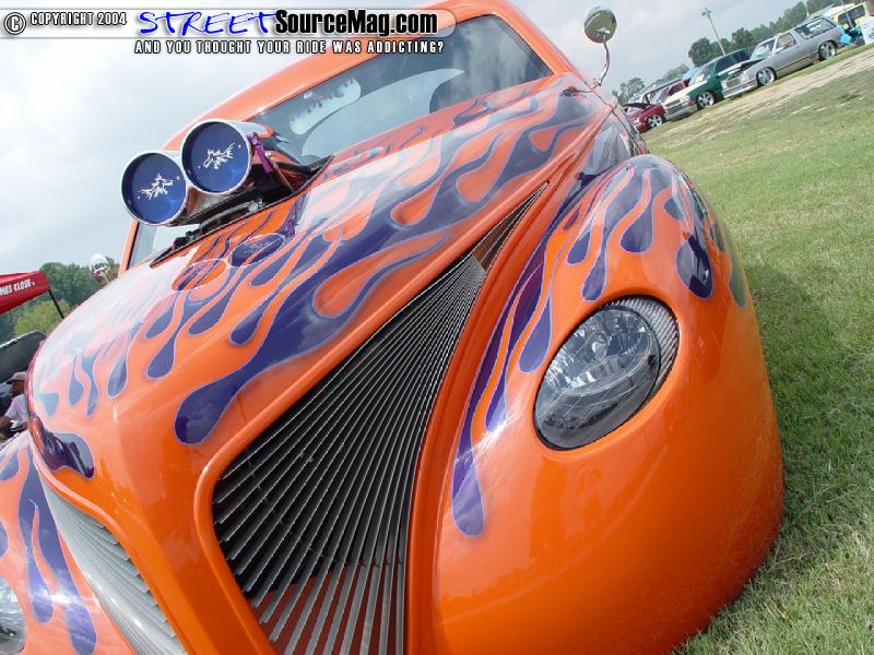 Keeping the body somewhat stock with the sleek curves, Scott would insure a custom appeal sure to please anyone who lay eyes on it. After lay'n down an orange base with some sick purple flames helping the Studebaker stand out. It would now be time to rework the interior from scratch.