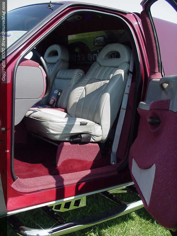 The next stop for Jason’s Ford was Trent’s Trick Upholstery in Baltimore, Ohio. There, the crew went to work building a custom dashboard and covering it in maroon tweed. Everything else including the door panels, headliner, floor and flex steal seats were covered in tweed and vinyl inserts were created, to give the interior a one-off look.