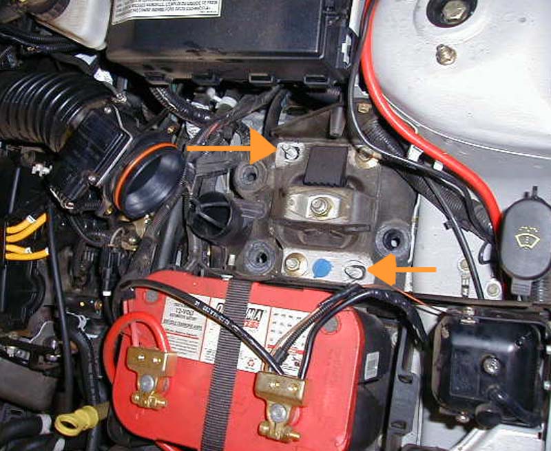 Step 7: Remove the two motor mount bolts highlighted by the arrows. Don’t worry, your motor’s not going to drop out or anything. Step 8: Install the Focus Sport heatshield. There are mounts on the heatshield for the motor mount bolts to go through. Now attach these bolts.