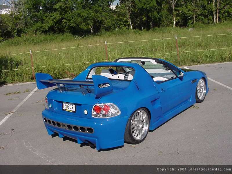 The interior not yet complete, a sound system would be the only thing leaving Donald from going crazy on trips to and from shows. To cure his crazed thoughts, Donald would take it upon himself to install the sounds required. An Eclipse in dash flip out screen, Eclipse in dash 6-disc CD changer would be installed for audio/video needs.  MB Quart mids and highs would be mounted in the stock locations accompanied by a set of JL Audio 8W3's behind the seats in a custom enclosure. Keeping the sound levels at a respectable one, a Phoenix Gold crossover would be mounted in place. Completing the system and helping push the new speakers through out the system would be a Phoenix Gold limited edition outlaw amplifier. Donald would like to thank all of his Sponsors, G&J Auto Body, Quicky's Speedshop and Faulken Tire for their assistance. He would also like to give a special thanks to Jessica Wells, Mark Ramirez, Fast Eddies Upholstery and club members of Gravity Concepts.
