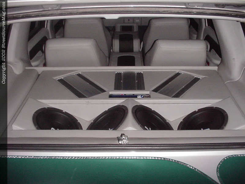 When asked about the current stereo found within, Gianni answered, "It's all hooked up by Crossfire, I couldn't even really tell you. It has 4 12-inch Crossfire subs, 3 amplifiers, TV's and a DVD player, etc, as long as my employees are entertained on their way to work that's all that matters."
