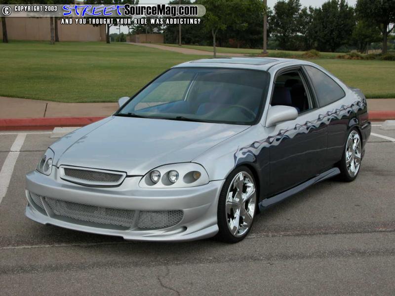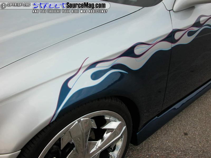 Now, Doug didn't care for the natural headlights, which is why he upgraded to the APC after market headlights and taillights for a perkier look. Then, turning to the crew and Jason Hughes at Street Dreams in Tulsa, Oklahoma, the Civic was given a finish of mesmerizing Lexus blue paint accented with blue and purple tribal flames. To complete the transformation he also continued the blue and purples throughout the tweed interior. With that kind of nip and tuck, it was time to give the ride a few more helpful mods to ensure it was everything Doug had had hoped it to be.