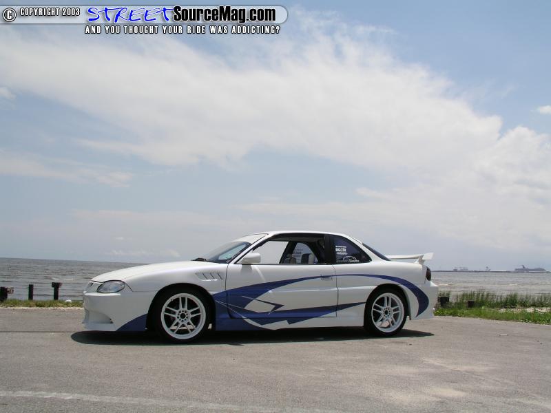 Now that the body was in righteous order it was time to shift focus and tackle the next task at hand. Eibach springs were installed on all four corners to bring the altitude of the entire car down two inches closer to Mother-Earth.  KYB Struts were then installed to smooth out the rough LA roads. High Rev Motorsports was then called upon to supply one of their upper strut bars to tie the front end together under hard cornering conditions. Now with the car sitting were it belonged it was time to replace the factory no frills wheels with some Racing Hart CP-035 18" white wheels shod in a 225/40/18 Sumitomo skins.