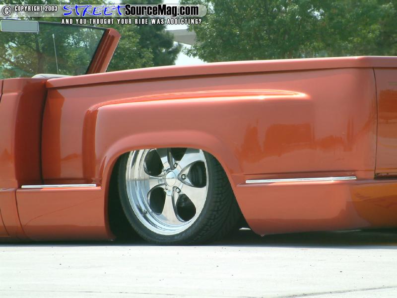 The use of an Ekstensive panhard bar would help finish things off. With the frame laying properly on the ground the crew would then perform a 3-inch body drop leveling things off.   The fenders would now easily engulf the 18x8 Eagle wheels upfront while the rear's house 20x8's. The battery would be relocated under the truck to ensure more room upfront for the wheels to come through.