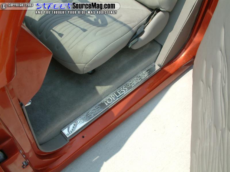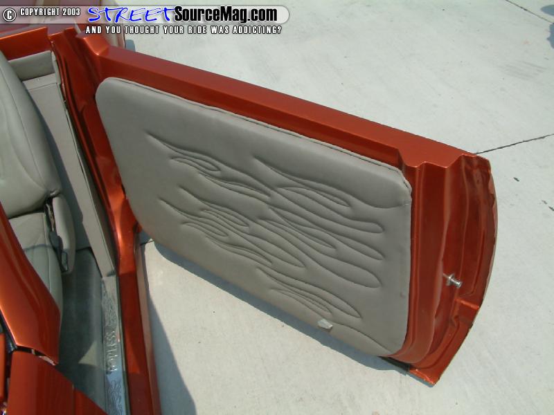 The doors would then be found with leather inserts and smoothed. Autometer gauges would replace the stock cluster while a set of Pontiac Grand Am seats wrapped in gray leather replace the stock bench.