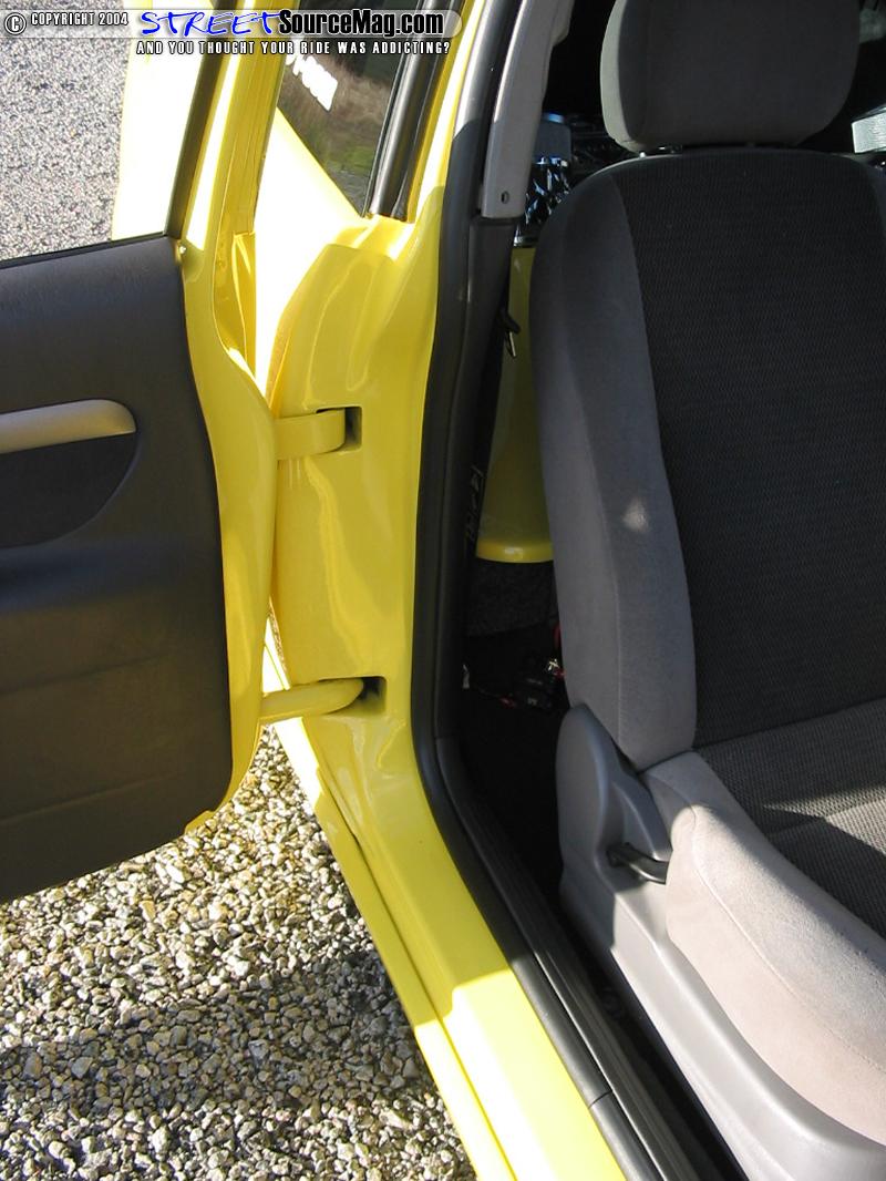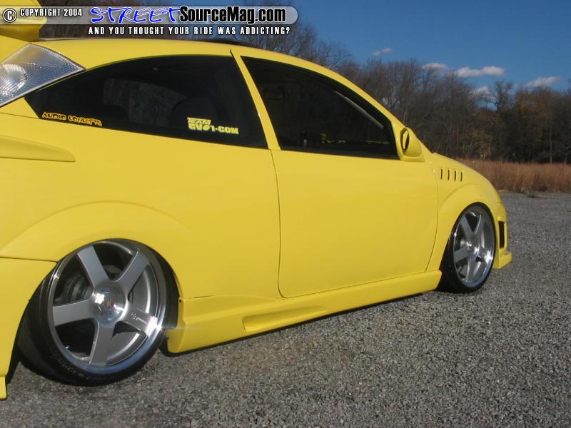A suicide door kit was installed with custom lower arms so that the wires could be run neatly inside the arm. Finally Keith Fenstemaker of Orefield, PA would paint the Focus Dupont Yellow/Silver Pearl.