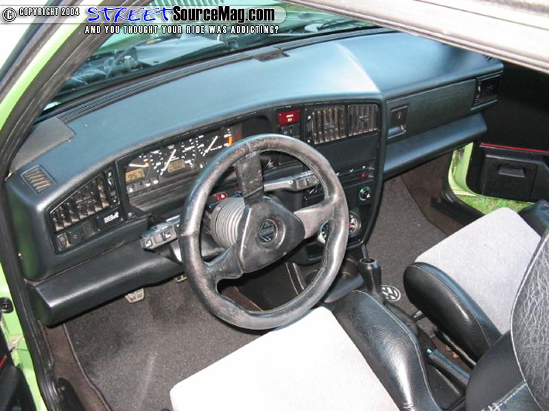 Going with the VW theme Jay fabricated mounts for a Corrado Dash and tilt steering column. Next anA3 Jetta Center console with armrest was cut and fit. 91 Jetta black and gray Recaro racing seats where bolted in, and to update the electronics Corrado one touch down windows where installed. A Momo steering wheel gives Jay the grip to keep his car on the road.