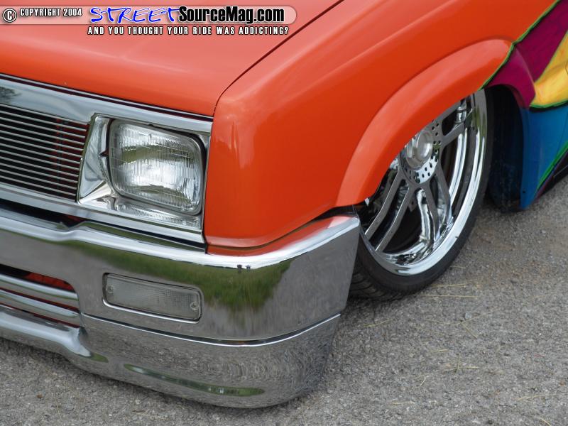 With the major modifications a thing of the past, Chris would then begin working the exterior. To help bring the vision to life KUSTOMWERKS would once again be called upon. For starters the stock hood, grille and bumper would be ditched in favor of new more trendy items. In their place a 2600i hood, chrome/billet grille and a Toyota 4wd bumper would be bolted up. The stock fenders would then be shaved of emblems and corner lamps.