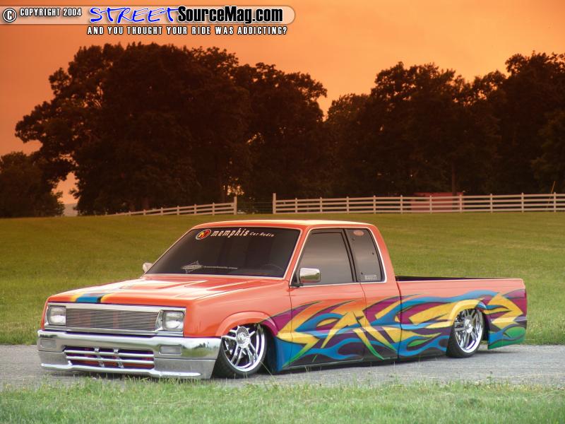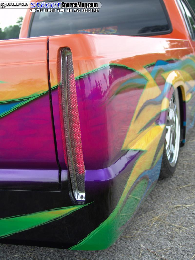 The door handles would then be shaved along with the taillights, tailgate handle, wiper cowl, antenna and rear bumper. A Sir Michaels roll pan would then be welded up along with the gas filler shaved and moved into the passenger wheel tub, clear caddy LED lights would take the place of the stock tails. The pinch molding would be trimmed down for more low while the bed would be smoothed out and Rhino lined.