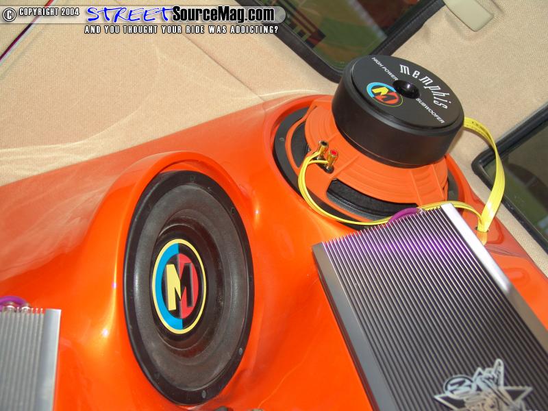 Memphis Audio Belle and 1000D amplifiers would then be installed to power the sound through the system. 2 Memphis Audio digital 1 farad caps and Memphis wire keep the system current running efficient.
