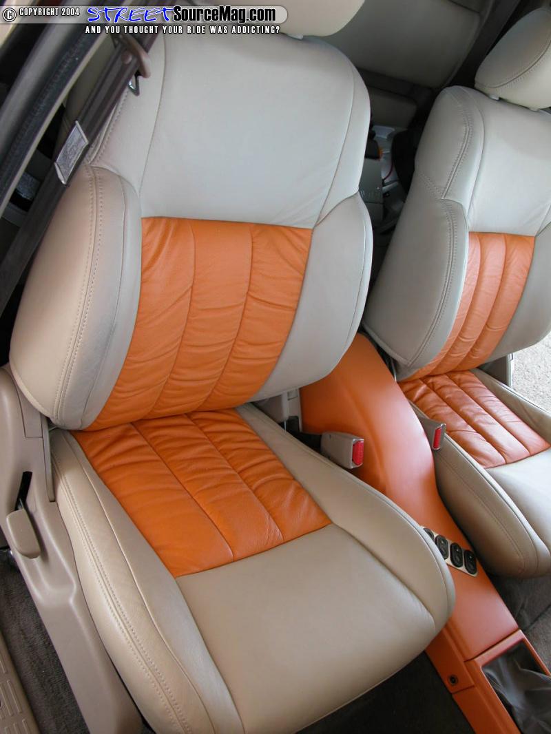 To scratch his next itch, Mark turned his attention to the interior of the truck. Tan and orange dominate the theme throughout the interior. The seats, door panels, and headliner have all been wrapped in Katskins sand and orange using leather for the door panels and headliner.