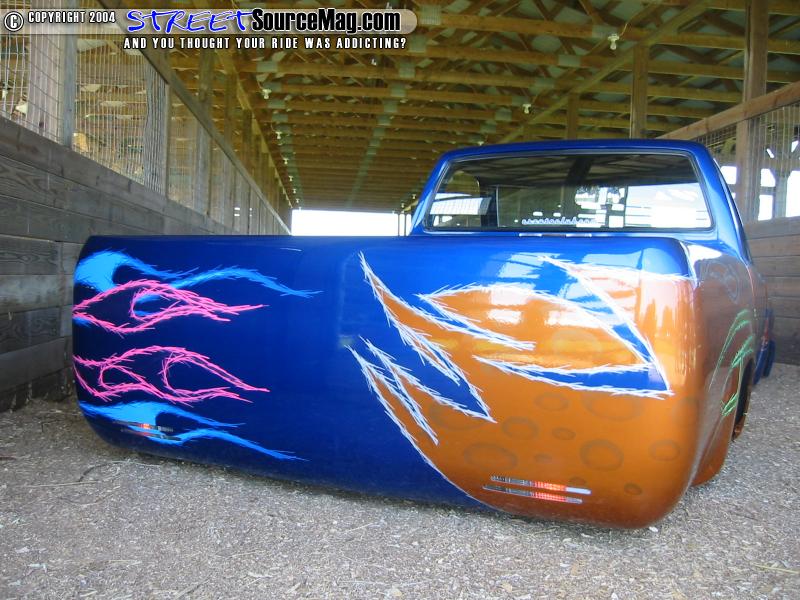 To give his truck another touch of his own Geoff would shave the front bumper to give it a smooth appearance.