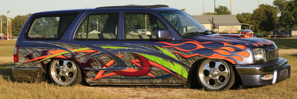 Throughout the years, countless numbers of show-stopping customs have been built, claiming fame and glory through their best-of-show trophies and their magazine coverage. Unfortunately, the lifespan of many of these trucks is short-lived, often being sold to people who have no idea of what they really have or just allowing them to be ruined through misuse or a lack of care. Some are recycled into new customs, being rebuilt several times over until they are either retired or sent to an uncertain fate under a new owner. But sometimes, a lucky few are maintained and treasured, kept in heated garages and covered to protect their beautiful paint jobs and enjoyed for the works of art that they are. After initially being built back in 2000 by Down-N-Dirty Customs in New Jersey and featured in Minitruckin’ magazine, this 2000 Toyota 4Runner, dubbed the “LowRunner,” was rebuilt again in 2001 with the addition of the graphics and some new bodywork. After being sold in 2004, the truck spent much of its time in limbo, wandering from owner to owner and even spending time in a used car lot. However, after appearing on eBay, Bill Churchill purchased the truck with the intent of showing and maintaining the truck’s show quality, which amazingly remained intact despite being passed around for several years. Yet despite Churchill’s best intentions, his dreams for the truck were not to be after discovering that his wife had developed cancer.