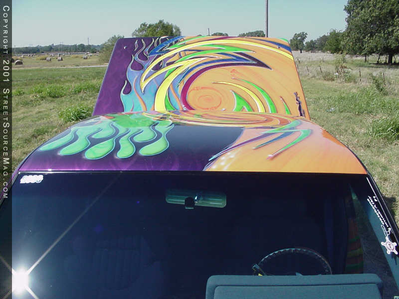 Now that the body was completed and ready for paint, it was time for Max to go crazy. With his own thoughts in hand, you can spend hours looking at all of the airbrush work on Tom’s truck. To throw people off, the paint scheme twist’s in the middle and throws out different graphics on opposite sides of the truck.