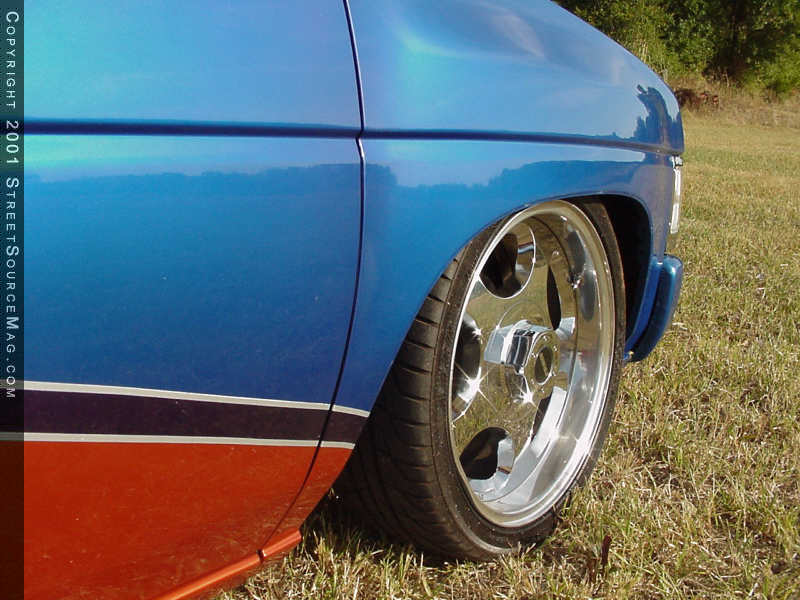 A set of TCI-chrome rev triangulated 4-link were utilized for the ultimate low, along with Gabriel shocks in the rear. To help out the front, 2” drop spindles along with Doetsch Tech front shocks were used. With the new low, the gas tank was raised 2 inches.  Now knowing that every ride is set apart from each other with rollers, it was time to bolt on a set of 17x7 prime 357’s in chrome which were wrapped in Yokohama 205/40-17 A520’s.