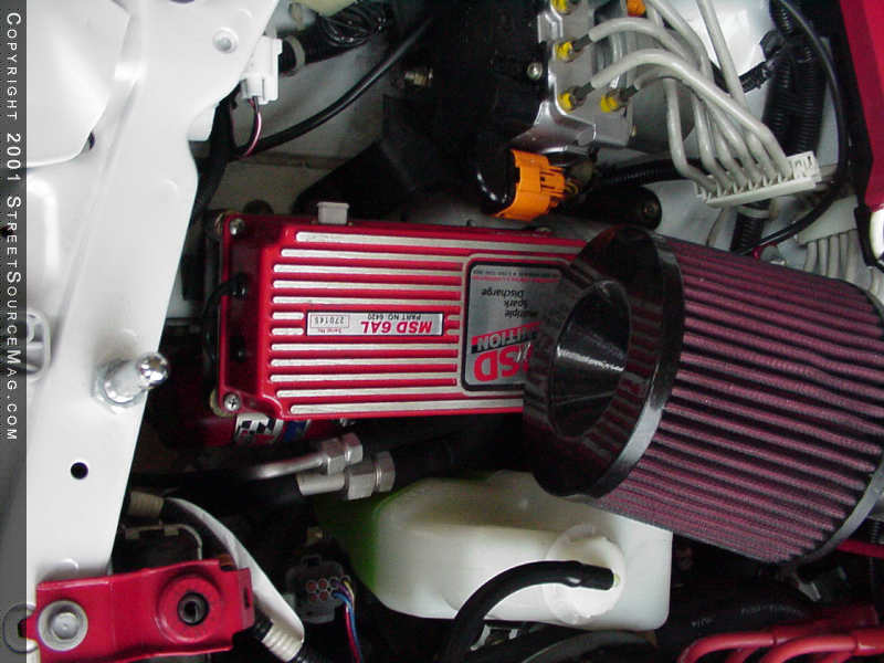 That, along with the AEM short ram air intake, while going down the road hitting the rev is a noise any import enthusiast would enjoy!  Now with the proper breathing, the use of MSD 6AL distributor and Blaster 3 coil were installed with Magnecor wires to provide the correct spark to the plugs. To push the power through to the front tires, the use of a ACT clutch and pressure plate where installed. Now Ryan decided to spiffy up the engine bay by installing a red Type R valve cover.