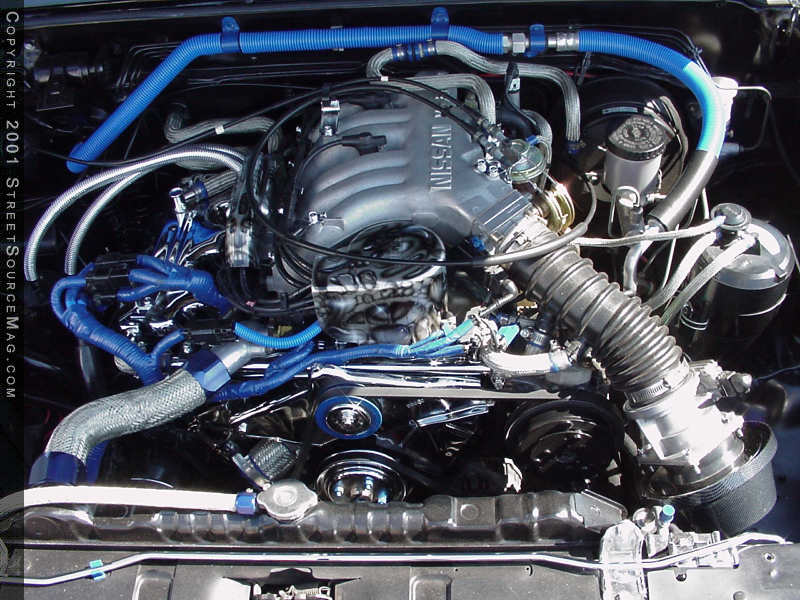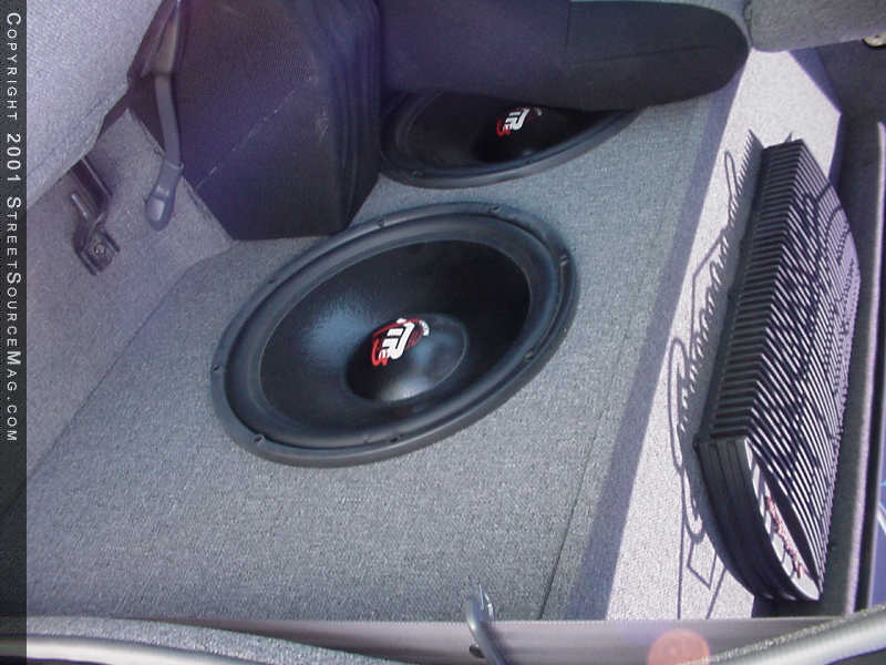 To apply the sound to the ear’s, the use of a Alpine 7832 CD player along with a clarion 920EQ were provided. Brian decided to use Alpine 6 ½’s pushed by a Rockford Fosgate Punch 100 for the high end. The subs of choice for the earth pounding bass would be a set of Orian XTR 15’s pushed by a Rockford Fosgate Punch 200. Brian installed the stereo system himself. And a very clean job Brian did. To compliment the stereo, Brian turned to Brett Mason of Arlington TX to provide the tweed expertise. While in Brett’s hands all panels where wrapped or stitched to perfection. You can also find graphics throughout the interior panels for an added flare. Brett also managed to put together a bed kit complete with the same clean tweed job. A Grant Signature series steering wheel was also installed.
