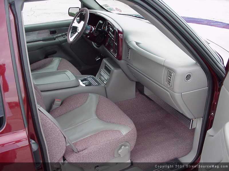 With the exterior complete along with the new stance Shawn's ride had received, it was time to work the confines within. Getting started, the dash would be painted and an array of billet items would be mounted into the dash. Keeping a billet theme within, billet pieces would be installed into the door panels, center console along with a few heater cover pieces. Around the tweeded floorboard you will also notice a set of billet kick panels and pedals.