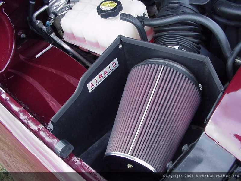 Beefed up with an Airraid custom intake and Hypertech re-programmer, the engine would need a little help breathing. With a new 3-inch exhaust mounted with a Flowmaster street muffler, the beast of a step-side would respond on demand. Living in the Texas area and being a heavy-footed driver, Shawn also had an electric fan mounted up.