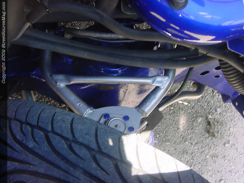 Beginning with the suspension Jason new he wanted to go low, real low. In order to get the truck down where Jason wanted it he junked all the factory suspension. Replacing the front suspension is a set of upper and lower tubular control arms; 2" drop spindles and a set of 2600lbs firestone airbags in place of the factory coils. Out back Jason replaced the leaf springs with a 2-link and a matching set of airbags. While bolting up the 2-link in the rear Jason made sure to notch the frame high enough to let the frame set on the ground.