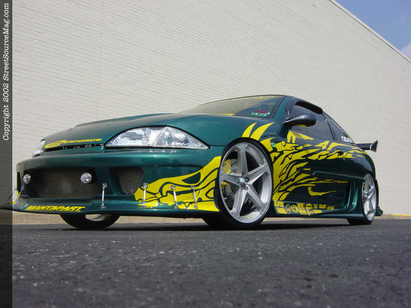 When you first look at this car you might think that it's a 2000 or newer Cavalier, but looks can be deceiving. Chris has changed out the factory '96 headlights in favor of the better-looking newer model headlights and clear corner markers. He had to trim the fenders to fit the newer lights. He also had to modify the RK Sport fiberglass hood to fit them.