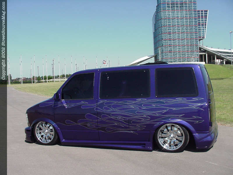 Rolling attire for "TwistedAlien" comes from 18" KMC Clockers wrapped in 225-40-18 Yokahoma rubber. Under the hood, Chris has painted and chromed many items for extra show points and also installed a 2" exhaust with 2-chamber Flowmaster muffler to help the 4.3 V6 breath a little easier. Chris would like to thank those that helped him complete his van "TwistedAlien", especially his wife Ann and his club Kontradiction, of which he is the "3rd Coast President."