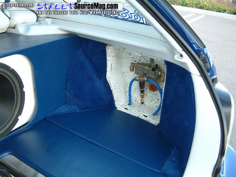 With 85% of the work complete, it was time to bring the Wagon down to a respectable height. To manage this a set of SMC air cylinders would be installed for lift. Pushing the air through the system would be help from a set of SMC valves. Keeping the sway down through the corners would be helped by a set of DC Sport sway bars. Sal and Mario of Nu Image of Inglewood, CA would be responsible for the suspension needs.