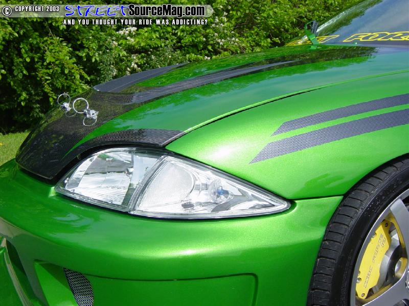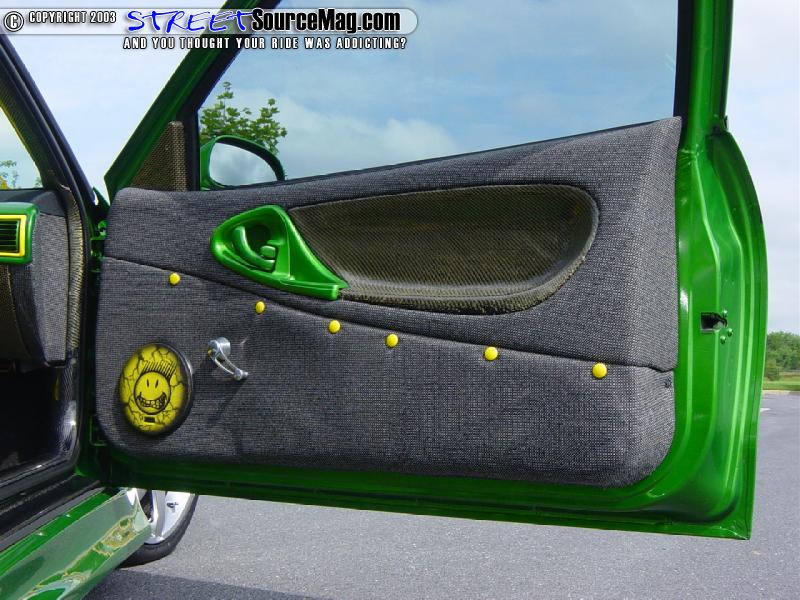 David Smith from St Albans, West Virginia performed all of the paint and bodywork. Once the paint was cured, Kool Look Graphics laid out the euro style carbon fiber vinyl graphics. For the extra touch, the trunk hinges were reworked to allow the trunk to flip up at shows.