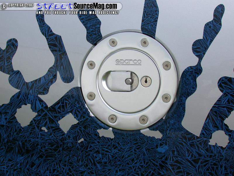 The stock taillights would then be replaced with a set having a carbon fiber casing, while a Sparco custom gas cap, Wings West commando spoiler and a set of MOMO hood pins would all be installed. Finishing things off, the lock on the trunk would be shaved and the mirrors and handles would be prepped for paint.