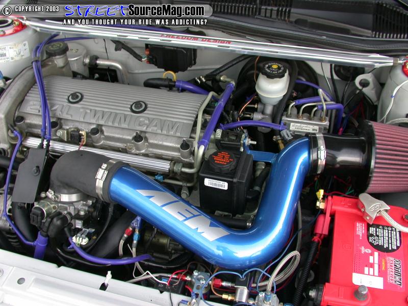The only thing left for Jack would be some engine work to back up the aggressive stance. To manage that a set of AEM and UR pulley's, AEM intake, RK Sport upper and lower engine mounts would all be installed. Next a wet 50 shot of Nitrous Express would be installed along with a RK Sport header with 2 ½ diameter hi flow Magnaflow exhaust and Ractive muffler. A blue hose kit would be installed to help with show points when the hood is up.