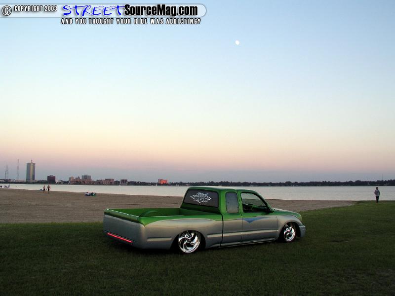 Next Kevin took a set of wire cutters and decided to relocate EVERYTHING under the hood that was in the way. Kevin then added a set of gas shocks to hold the hood up instead of the prop rod design that came with the Taco. All of this to allow the engine compartment to host a clean look.