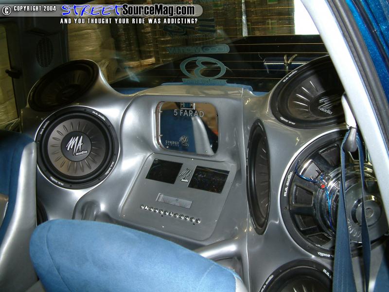 Keeping the interior flowing with custom components Jim would have help from Brent once again to finsh up the Stereo system. For starters a Sony Xplode CD Player would be installed into the dash. MA Audio Subs, mids and highs keep provide the sound while the MA Audio amplifiers help push the sound to high volumes.