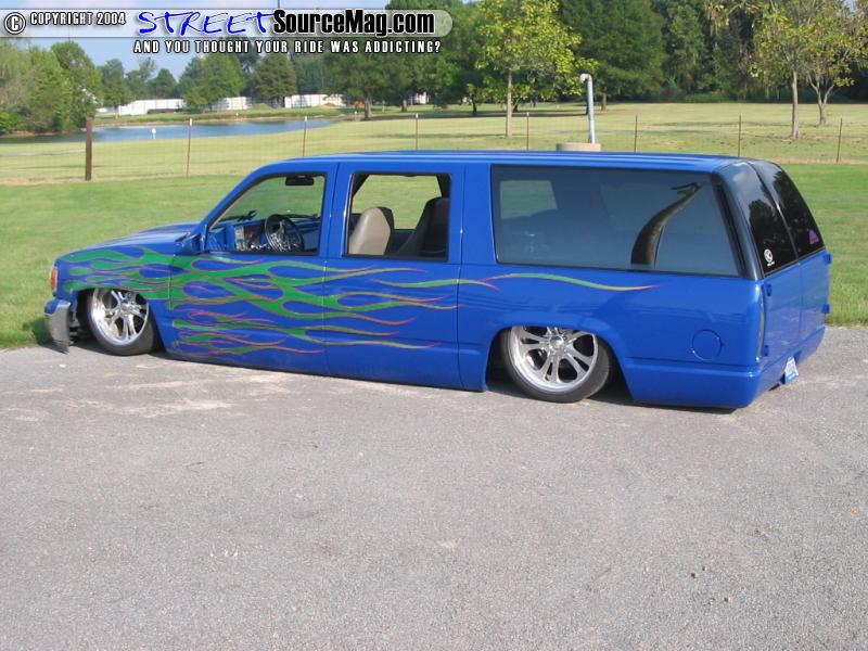 So he would fit in just right Jake decided to perform a 2.75” body drop on his Burban. After hooking up with Ted Aguliar for some help with the bodywork, Jake would next modify the exterior of his Suburban. Next a 2000 Cadillac Escalade front end would be swapped with his outdated front to give it fresh look. This front included fenders, hood, and headlights. A fiberglass grille with the Trendz billet insert would complete the front.