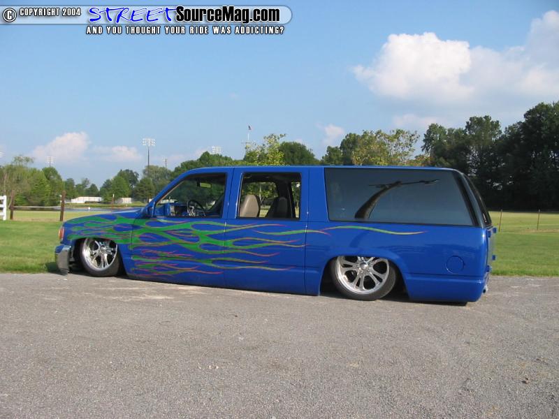 Jake would like to point out that he purchased his Suburban from a salvage yard with a front end hit. After 5 months of body and frame work it was ready for show. He’s been dragging it from coast to coast ever since he finished it including the long haul to California in it twice. He would like to thank his fellow Negative Camber club members, Katzkins, Boyd Coddington, all of his friends, all the people who helped with the build up of his Suburban, and most of all his wife who has been his co-pilot to every show. Keep your eyes open for this Suburban at a show near you, for a driven show truck its pretty damn impressive.