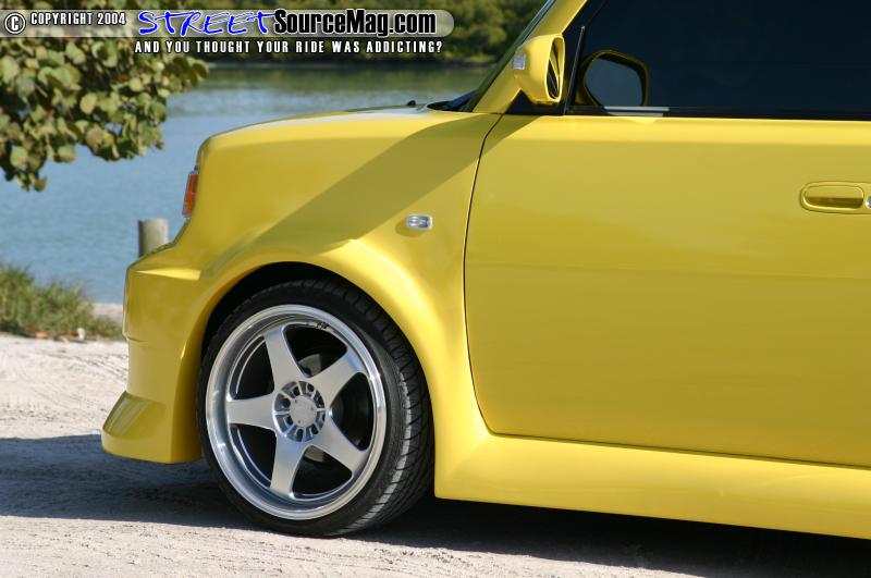 Dan Howard picked up his Scion in March of 05. Soon after he began customizing it starting with the FAB body kit. Dan worked with MJ Customs who molded the front bumper, rear bumper, and side skirts into his Scion for a cleaner look. They also molded in four custom flares over each wheel well.